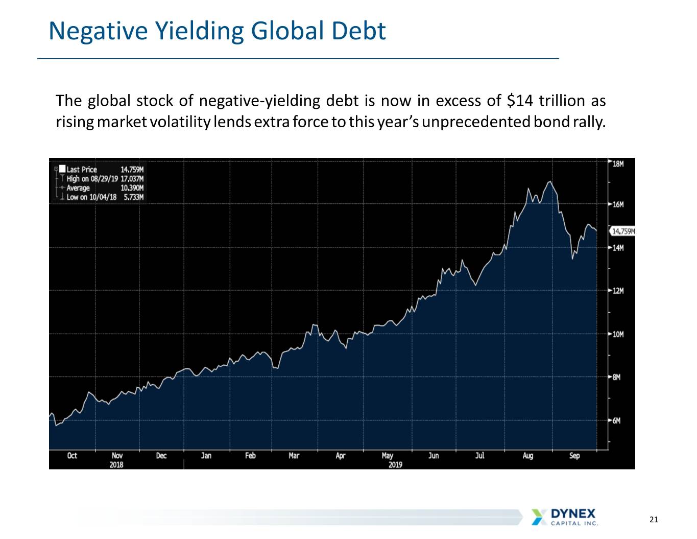 Negative Yielding Global Debt The global stock of negative-yielding debt is now in excess of $14 trillion as rising market volatility lends extra force to this year’s unprecedented bond rally. 21